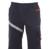 Reißverschluss. Reflexstreifen auf der Vorderseite des rechten Beins. Rückseite: 1 Tasche mit Patte und Klettverschluss, 1 Hammerschlaufe,
