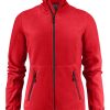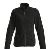 Damen Fleece-Jacke mit zweifarbigen Reißverschlüssen vorne und an den Taschen.